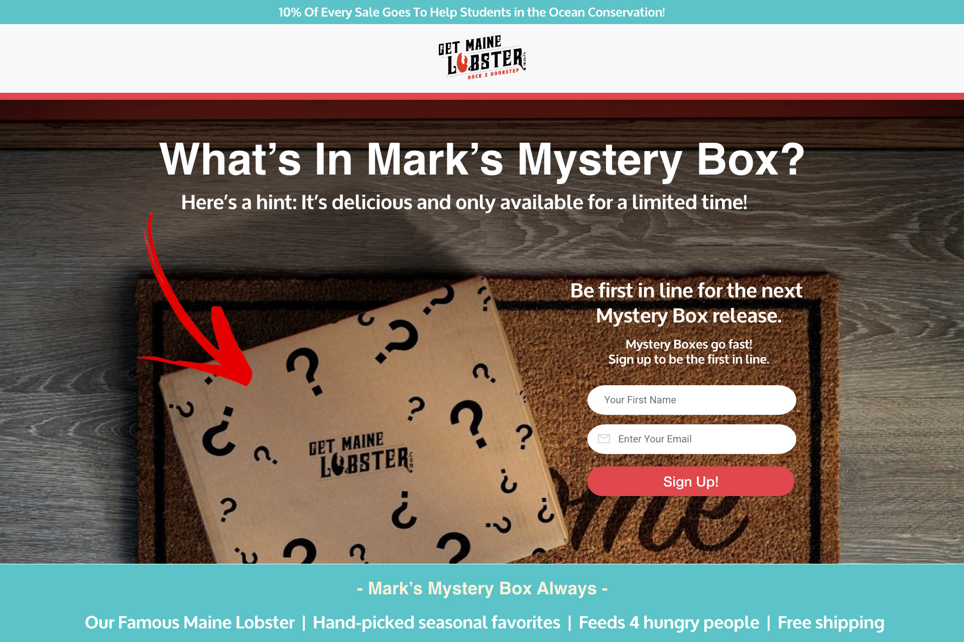 Designing for Get Maine Lobster was a personal favorite of mine, simply because I love seafood! We designed a new lander for a promotional mystery box campaign. This lander and our campaign completely sold out their June and July inventories! The client was happy, and I got some wicked good lobstah!
